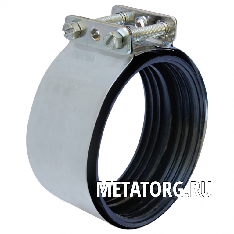 Соединительные хомуты для чугунных труб используются для монтажа трубопровода безраструбного типа (SML). Уплотнитель, располагающийся по внутреннему диаметру изделия, сохраняет герметичность соединения.
